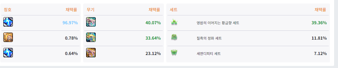 버퍼는 버프력이 모두 똑같으니 세트 아이템이 높은 것 위주로 채용하시면 되겠습니다.