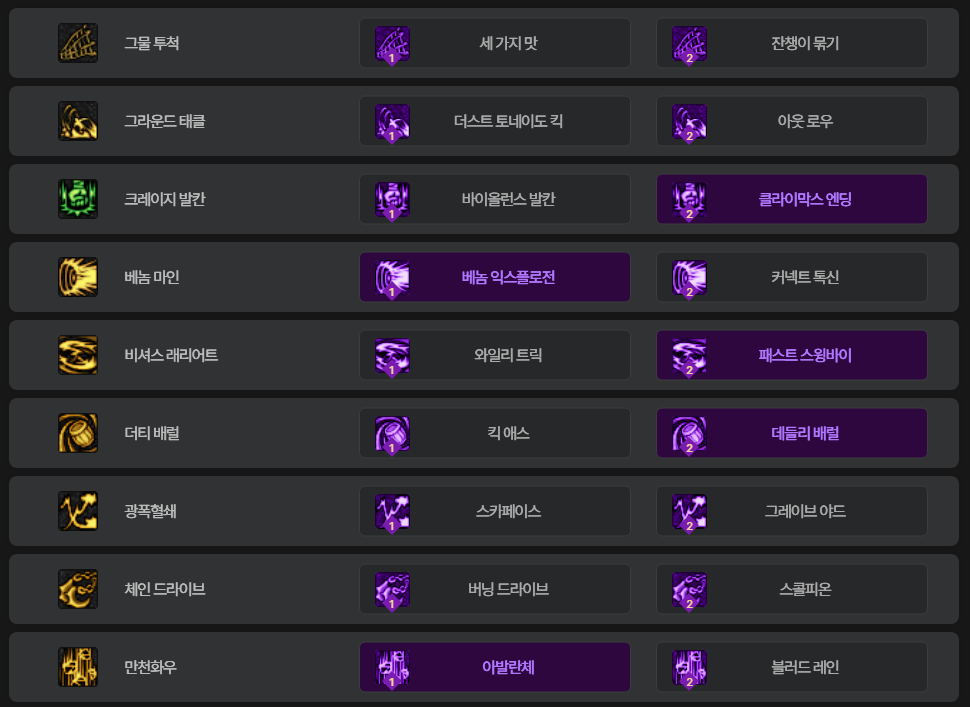 모든 상황에서 손이 바쁜건 싫은데 , 열심히 딜할 구간에서도 평타치면서 쉬는건 재미없다. 싶은 정도의 중급자 이상의 유저들에게 추천드리는 빌드입니다.