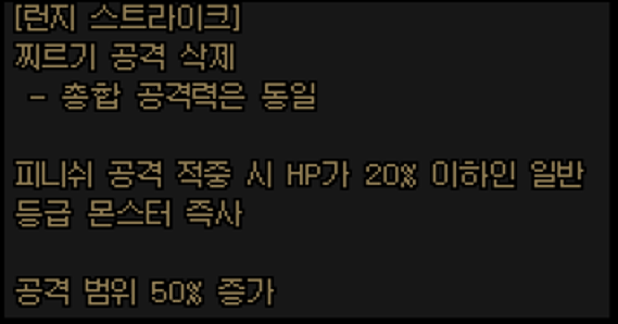 스킬이 깔끔한 단타기로 변하고 공격 범위도 늘어나서 방 하나를 정리하거나 대충 날리기에 좋습니다.