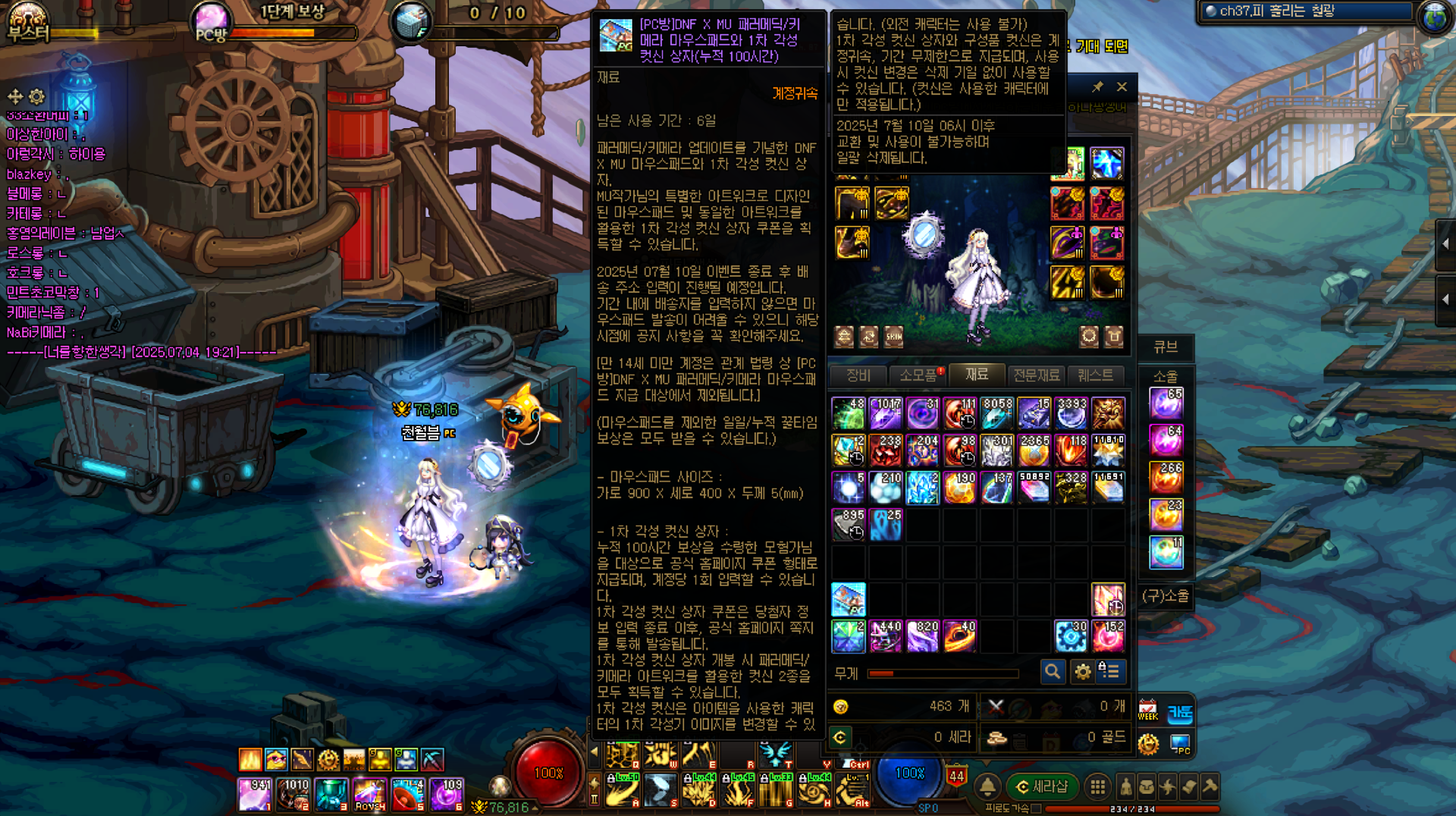 <h2>마우스패드는 7월 10일에 주소지 입력으로 보내드리고, 쿠폰 번호도 알려드릴게요. 모험단 "천월군단"으로 친추주시거나 여기 댓글 넣어주세용.</h2>