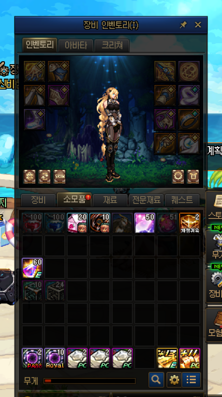 버퍼는 마법석 보조장비가 우선이라길래 이벤트로 받은 10 증폭권을 써주고 무기에도 써준 상태입니다.