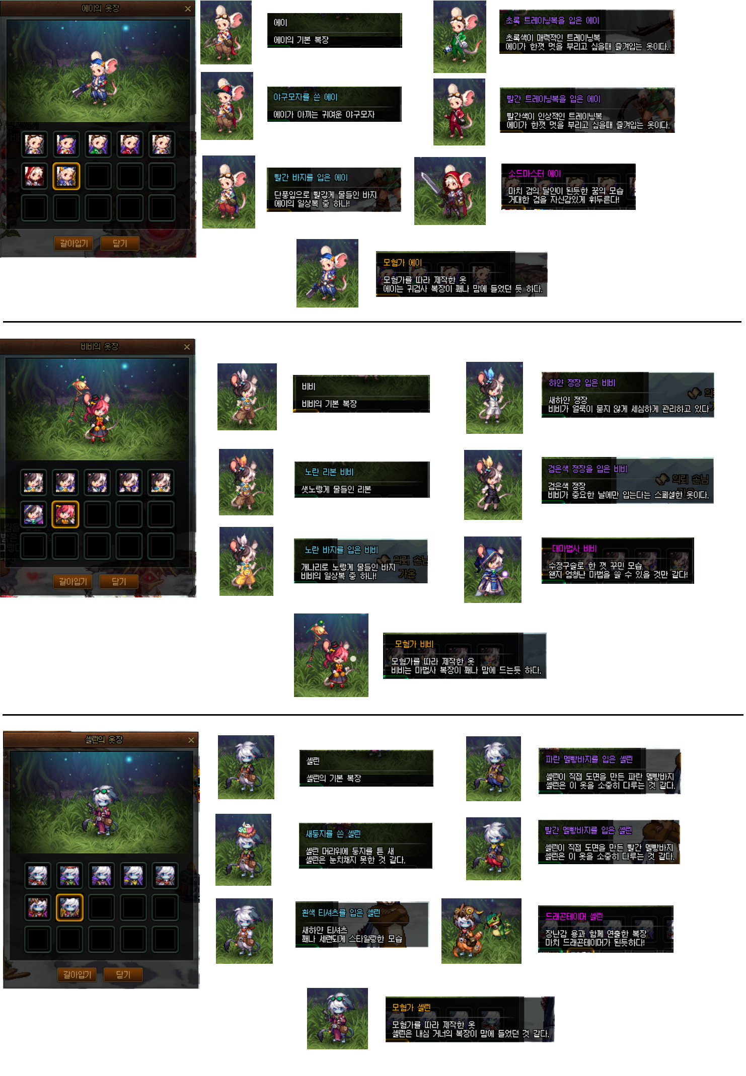 에이, 비비, 셀린에게 입혀줄수 있는 모든 옷 제작 완료