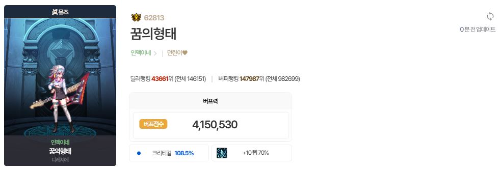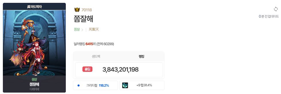 딜러 스펙이 26억 / 명성 6.1짜리 이단 캐릭터로 되어 있더군요. 기존 떨러 스펙 38억 마도