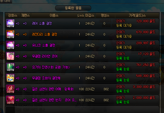 종료전 교환가능 아이템을 모아서 다시 경매장에 올려주고 껐습니다.