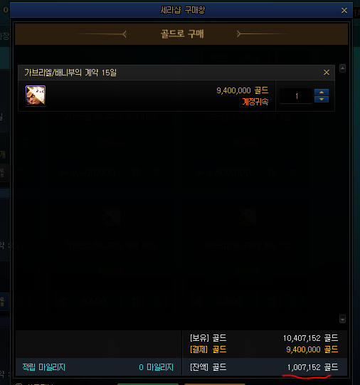 2일차에 1000만 골드를 모아서 배니부계약 산 것때문에