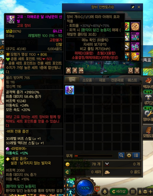 데미지 증가량은 동일 등급 기준으로 세트 장비가 더 높지만 유틸성 면에서는 압도적인 쾌적함을 제공해 줍니다.