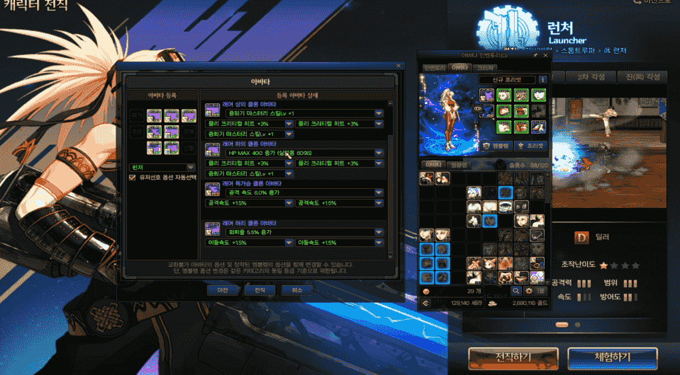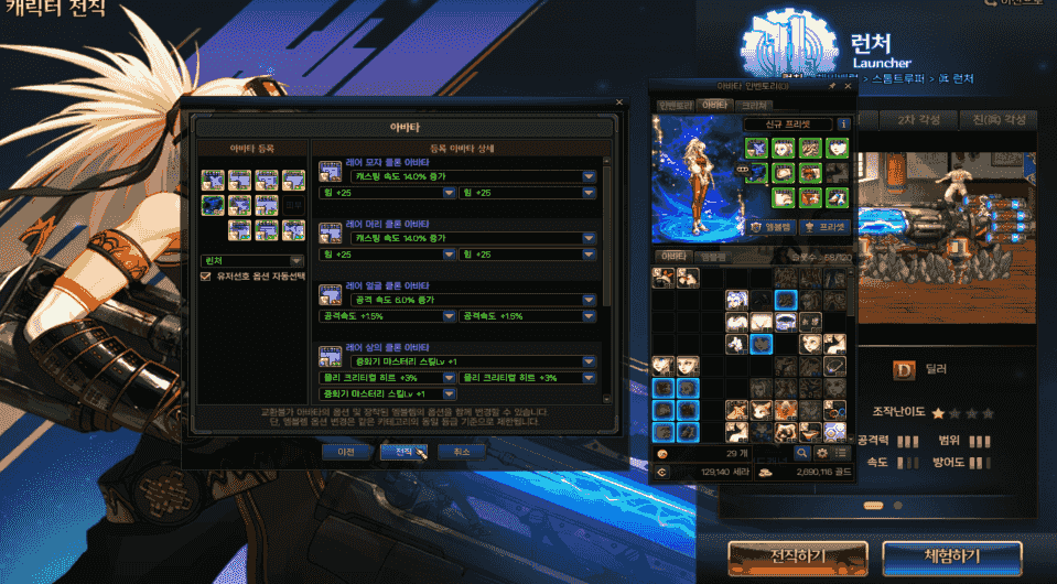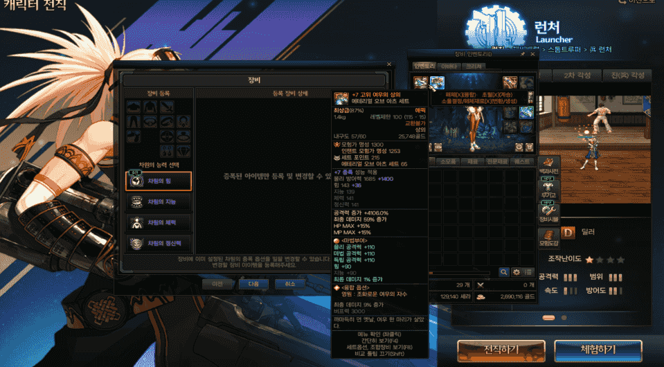 장비 증폭 스탯 변경창 : 지능 여스핏, 여메카 → 여런처 변경시 스탯 ‘힘’ 선택