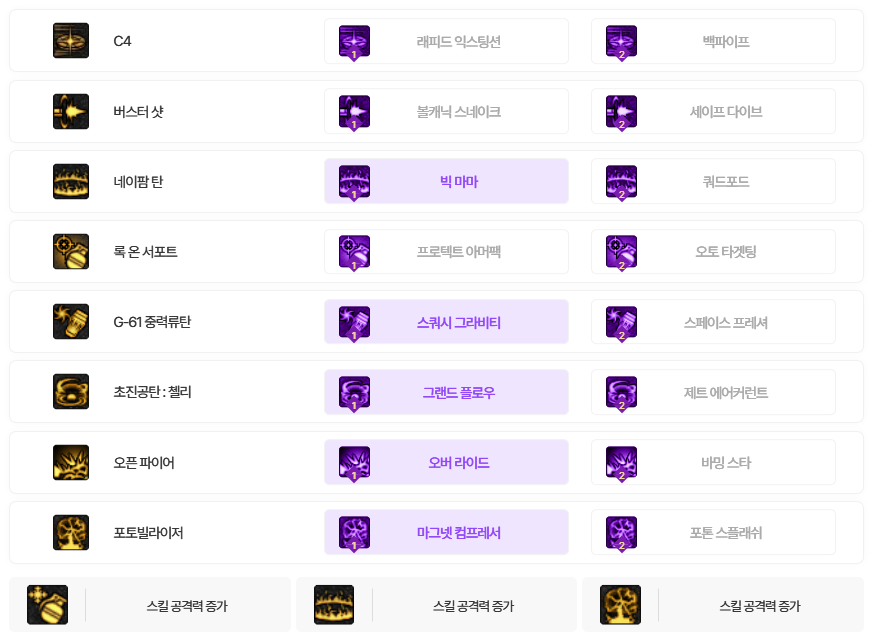 상하의 : 병기숙련/HP Max(병기숙련x2)(물리크리티컬 or 힘+물리크리티컬)
