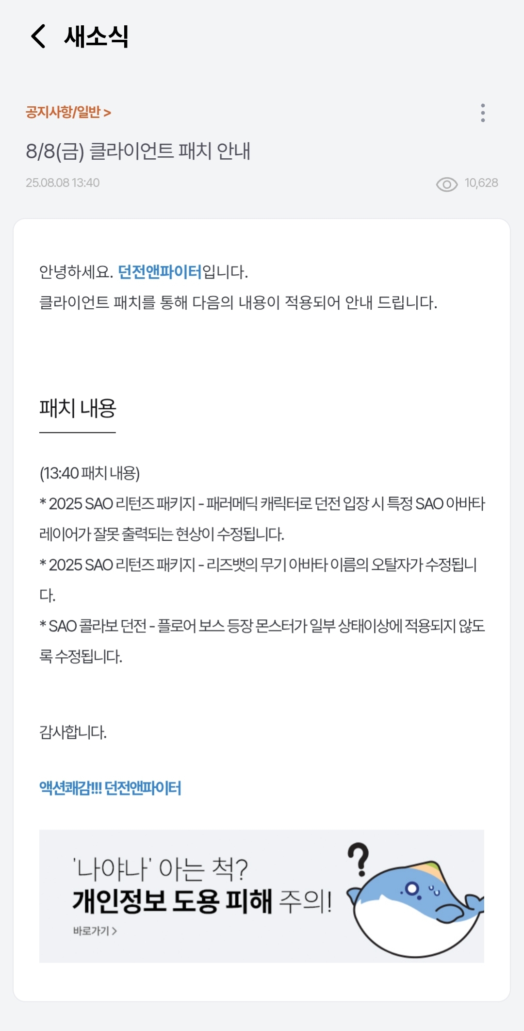 공지 [수상자 발표] [월드보스] 정보/공략 작성 이벤트 수상자 안내 던전앤파이터 2025.12.04 1,643 0 공지 [이벤트] [디레지에] 레이드 정보/공략 작성 이벤트 던전앤파이터 2025.11.26 5,790 0 공지 2025 던파페스티벌 20th Anniversary 발표 요약 던전앤파이터 2025.11.22 80,660 21 공지 [상시이벤트] 11월 묻고답하기 이벤트 안내 (10월 답변왕 발표) (8) 던전앤파이터 2025.11.06 36,724 1 공지 장비 / 플레이 / 뉴비 정보 모음 (217) 던전앤파이터 2025.04.24 999,999+ 115 공지 던전 공략 모음 (디레지에 레이드) (174) 던전앤파이터 2025.11.26 999,999+ 138 공지 전직 별 가이드 모음 (25/11/24 갱신) (742) 던전앤파이터 2025.11.24 999,999+ 389 수다 [크리에이터] ㅠㅠ200억이 안되네 (5) 조신한크리 2025.12.04 627 0 수다 [크리에이터] 크리에이터를 쓸때 스왑을 해야 되는데 C키를 잊게 되네... (4) 스칼렛린치 2025.11.30 250 0 수다 [크리에이터] 확률이 이게 맞나 ................... (2) 칭갓수라 2025.11.13 660 0 수다 [크리에이터] 이 악물고 모르는 척 하는 종민이면 개추 ㅋㅋㅋ 액정필름맛 2025.11.13 422 0 팁 [크리에이터] 이세계 마왕 잡기 꿀팁(크리에이터) (2) 일하자버퍼야 2025.10.26 6,714 2 질문 [크리에이터] 던인물님들 크리에이터 스킬트리 추천좀 해주새요..!! (1) 블러드쿼카 2025.09.28 1,774 0 질문 [크리에이터] 님들 듀얼모니터 서브 질문있습니다 트블키워볼까 2025.09.26 1,216 0 질문 [크리에이터] 크리에이터 레이드 Insert 지도 마우스 안보이는데 보이게 하는 방법 아시는분..... (2) 오르가디언 2025.09.22 1,413 0 질문 [크리에이터] 크리 각성기 커맨드 뭐쓰시나요? (8) 와인맛체리 2025.09.22 1,768 0 질문 [크리에이터] 크리에이터 빙하시대 스킬 개화 질문 (2) 죠카테 2025.09.03 726 0 질문 [크리에이터] 크리에이터 칠흑+창조목 질문 (1) 죠카테 2025.09.02 926 0 질문 [크리에이터] 크리에이터 칠흑 vs 세렌디 (1) 죠카테 2025.08.27 816 0 수다 [크리에이터] 크리에이터 커맨드 버프 미전용 버그 있습니다 (5) 동방&플랑 2025.08.20 676 0 질문 [크리에이터] 크리에이터 키우고 있는 복귀자 입니다 템셋질문이요 (2) 감자는키메라 2025.08.18 696 0 수다 [크리에이터] 크리에이터 키우는 중인데 소매넣기 당했어요 (2) 이정안 2025.08.17 793 0 수다 [크리에이터] 크리0% 조질거면 마우스 4버튼이라도 줘 아님 평타기믹 마우스로 되게해주던가 리벨라이 2025.08.16 531 0 질문 [크리에이터] 크리에이터나 닼나는 세트장비를 뭘로가야 좋을까요?? (3) 감자는키메라 2025.08.14 811 0 수다 [크리에이터] 도른건가 크리 누락? (5) 리벨라이 2025.08.13 978 0 수다 [크리에이터] 님들아 이벤트 던전 플로어 보스 빙하시대 써지나요? (5) 조신한크리 2025.08.09 945 0 수다 [크리에이터] 금요일 패치에 크리버그 누락 실화인가요 엔젤대표미아 2025.08.09 938 0