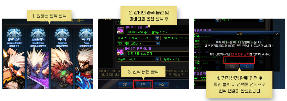 동일한 수준의 세팅으로 다른 직업으로 전직을 바꿀 수 있는 기회에요