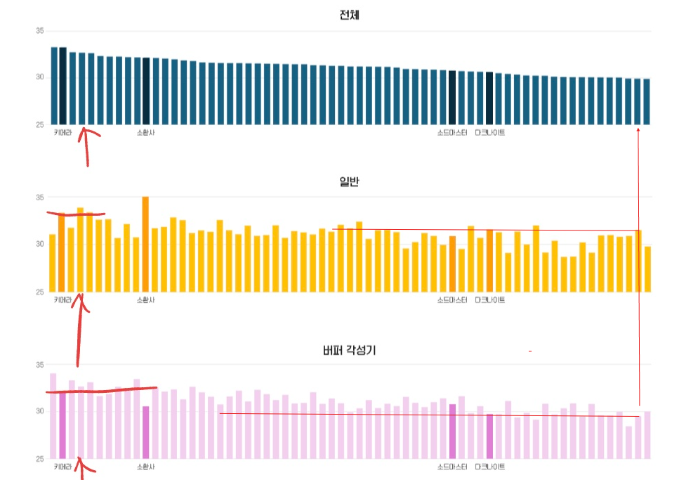 그리고 뒤에서 두번째에 위치해있는 그래프의 경우 다크나이크 바로 뒤에있는것보다 일반딜이 더 높은데 전체는 뒤에서 두번째