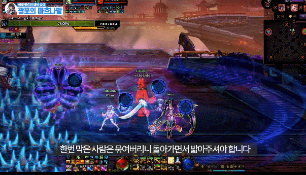 보스의 공격에 맞게되니(움짤은 보호막포함 hp29%정도 감소)  평타키를 약간 텀을 두고 누르는게 좋습니다