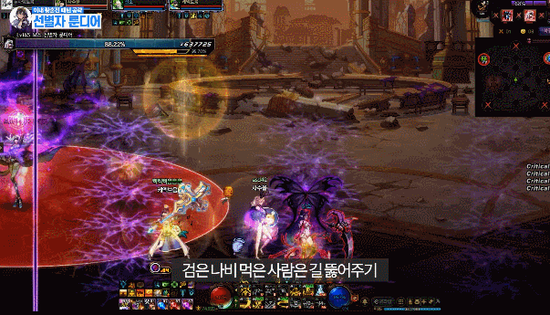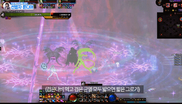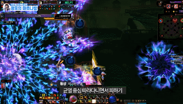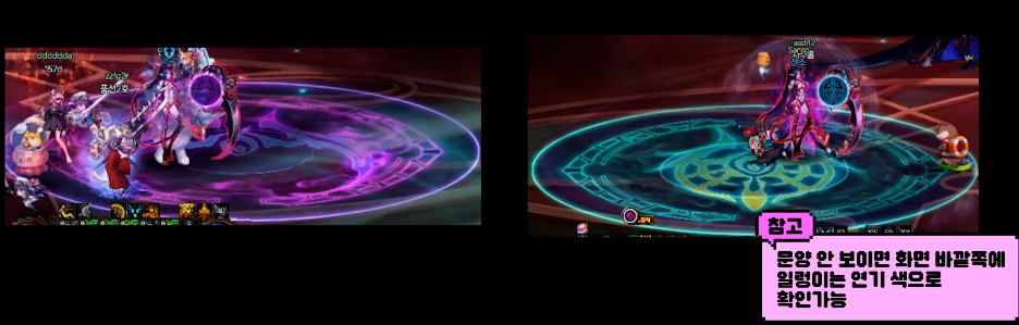 따라다니는 보라색 장판은 다른 사람에게 데미지를 주니까