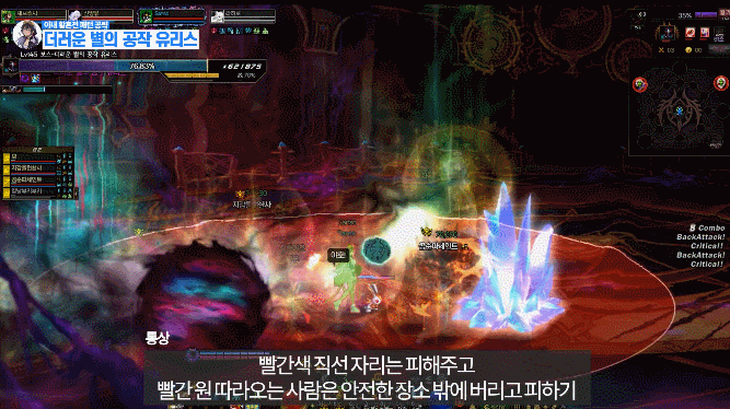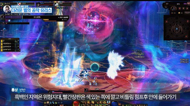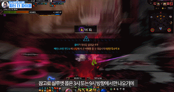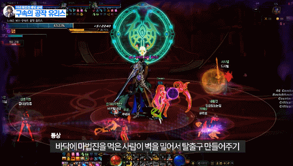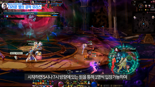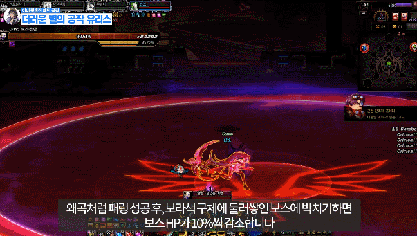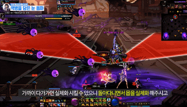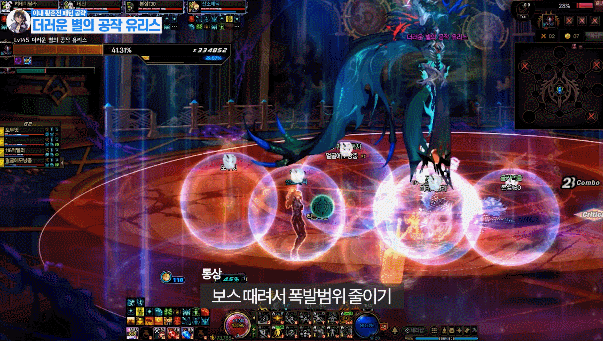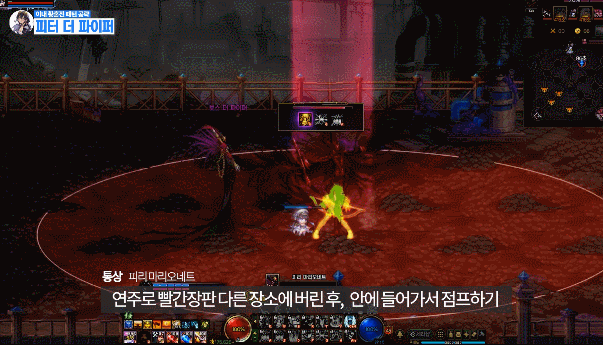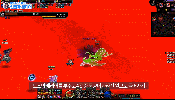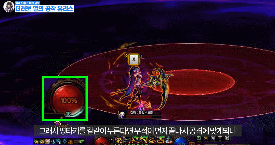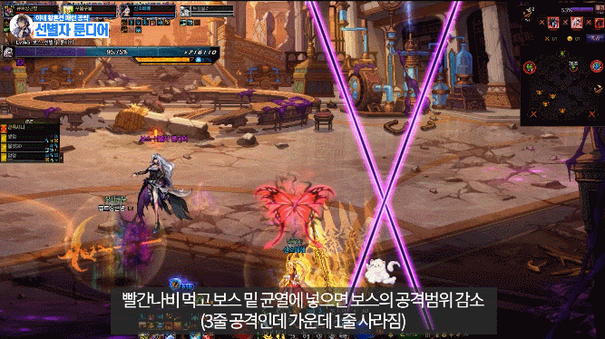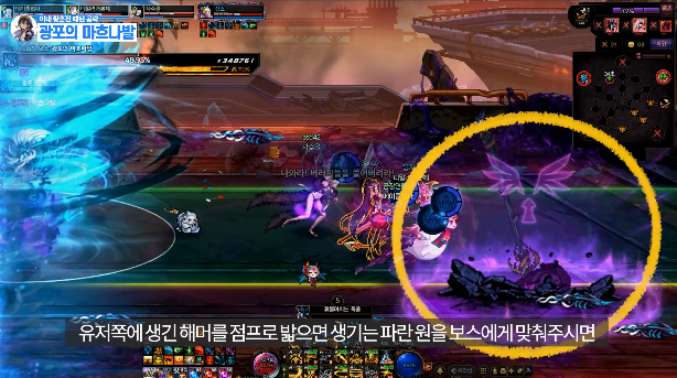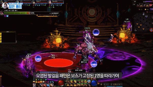 맵 어딘가에 있는 보라 원을 밟은 후 유저를 따라오는 빨간 장판을 보스한테 맞추기