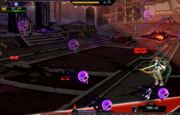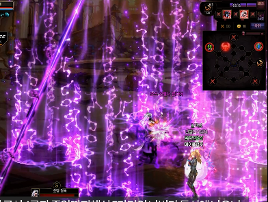 보라색 원을 따라다니면서 보스의 공격을 피해 생존하는 패턴이며