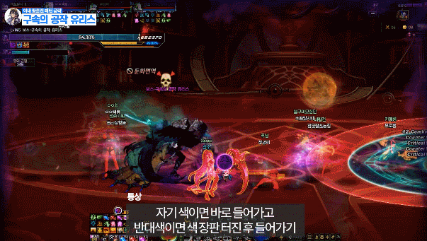 참고로 패턴중에 원에 둘러싸인 유저가 있는데 이 유저가 같은 색 문양에 닿아주시면