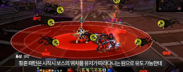 황혼에서는 시작시 보스의 위치를 유저를 따라다니는 원으로 유도 가능한데
