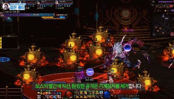 이때 기계장치를 평타 쳐주시면 보스한테 날아가서 패턴 스텍이 감소합니다