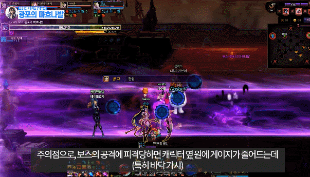참고로 보스가 공격한 자리에 보라색 오염지역이 남는데