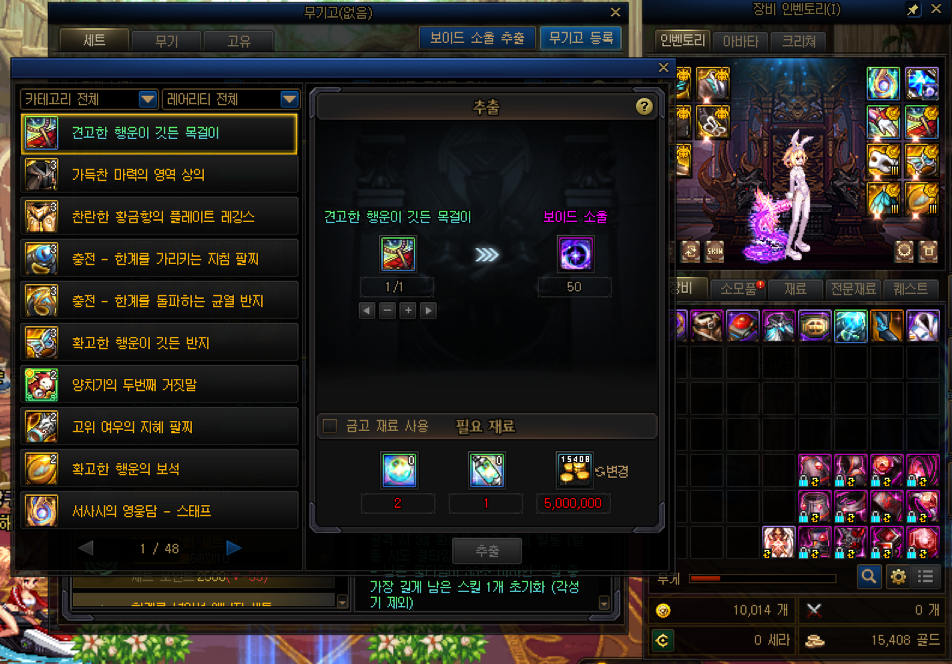 즉 등록된 태초1개 = 보이드소울 50개 < 요구 재화 500만골드+태초소울2개+최상급소울변성제