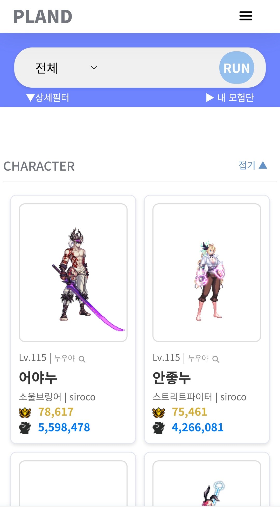 [공통] 모험단 관리, 장비딜 체크 API 사이트 플랜디(안개융화 반영) (23)