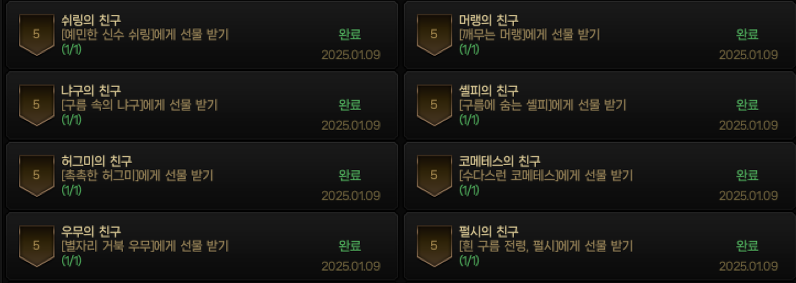 회복물약(레미) 확정 + 추가 물약/재료 2가지가 기본이고, 신수 등급에 따라선 호감도템, 카드(업글용), 1회용 변신 코스튬 등 더 주기도 함.