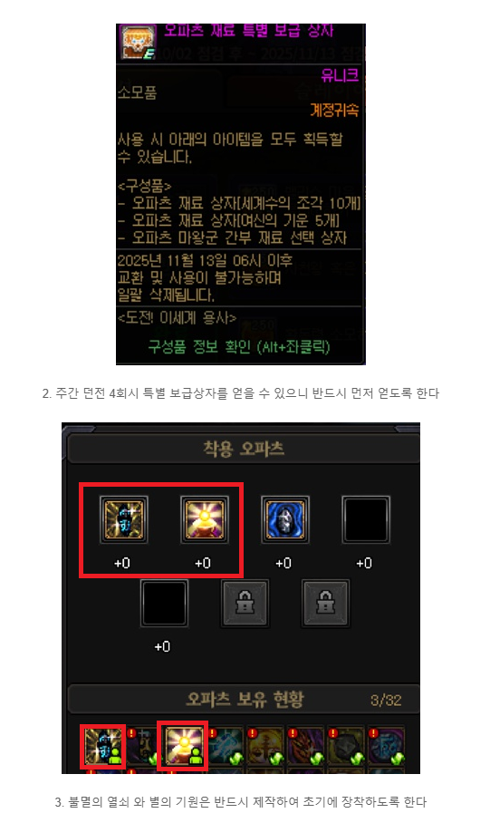 4주차(10/23 ~ 10/29)에는 강화 레벨확장 99 입니다.
