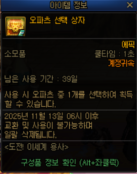 선택이 가능한상자는 반드시, 활동력 5를 증가시켜주는