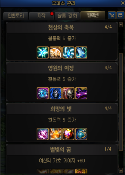 오파츠 관리를 열면 , 재료가방이 보입니다.