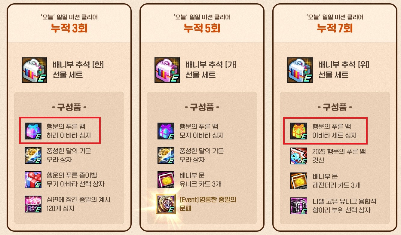 이번 추석 출석으로 허리 부위는 총 2번 얻을 수 있습니다.