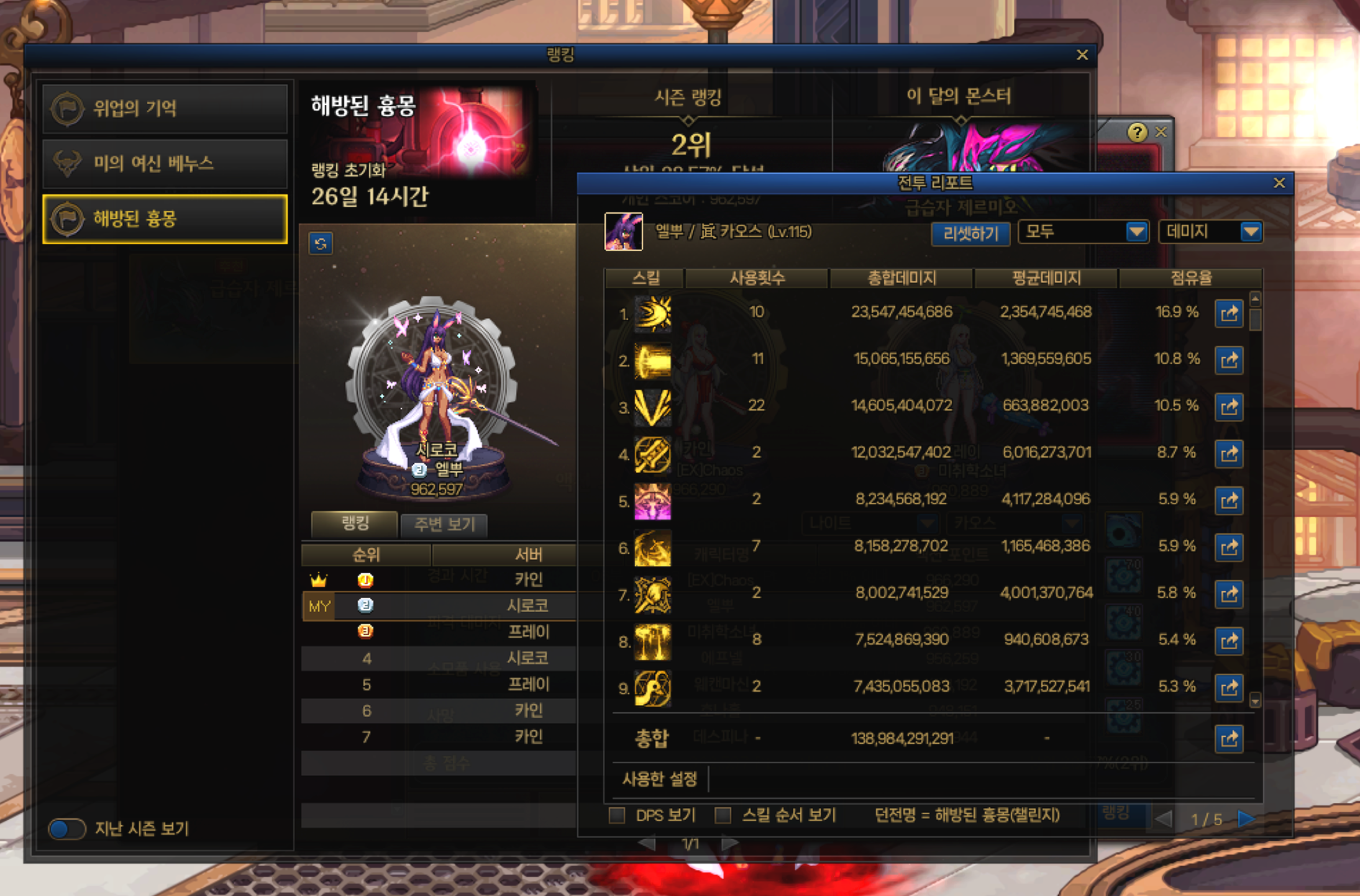 다만 소환수마신을 하게되면 데미지 사이트 통칭 던담에서 인정을 안해주어 딜이 박살나니 참고해주세요 ....