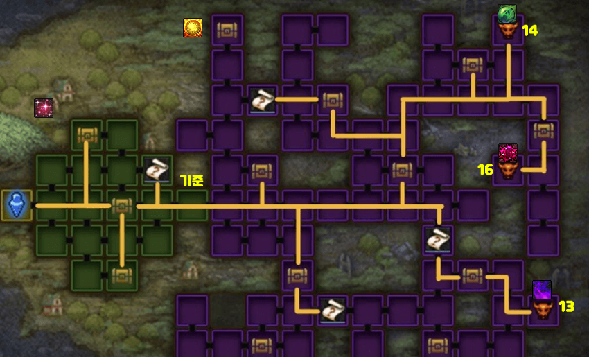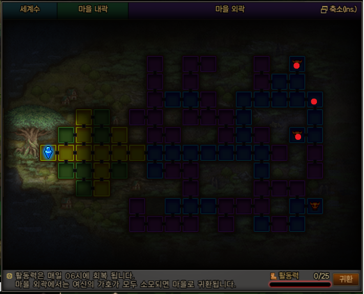 활동력 회복포션을 사용하여 총 35 포인트로 위와 같은 루트를 탔는데,
