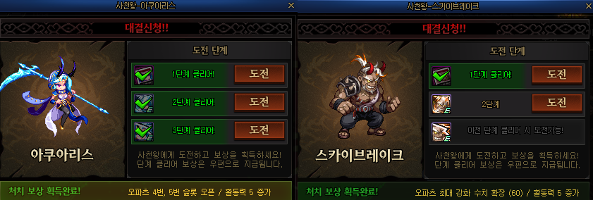 ㄴ슬레이어 로드 미션을 고려하여 가능하면 모든 마왕 간부군을 처치 하는 것이 좋습니다.