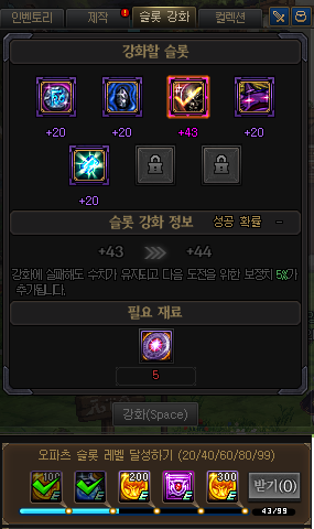 일단 하나의 오파츠 슬롯만 계속 강화하는 것이 좋습니다.
