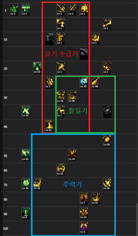 이 단점을 디바우러, 안면 할퀴기, 발톱 문신 세가지 스킬로 내려오는 방법을 사용하시면 됩니다