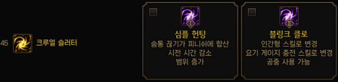 1. 피스 피어서와 크루얼 슬러터VP2를 스킬 강화 쿨감에 두고 발골과 묶을 것