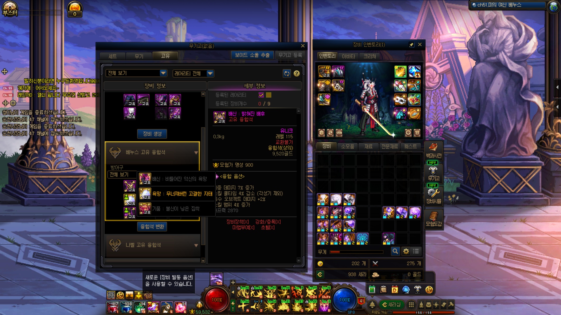 그래서 복구를 하든 다시 변경을 하든 하려했는데 사진처럼(에픽은 오늘 업그레이드 함) 하의 융합석(배신)이 없어지고 복구는 3일이 지났다고 안된다네요...