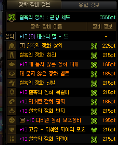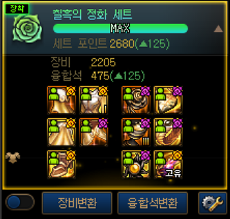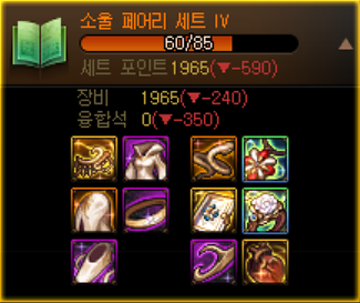 무기제외 노태초 항깡까지해서 억칠흑을 끼고 스펙업을 하던 도중에 소울페어리가 태초 2세트가 되었습니다.