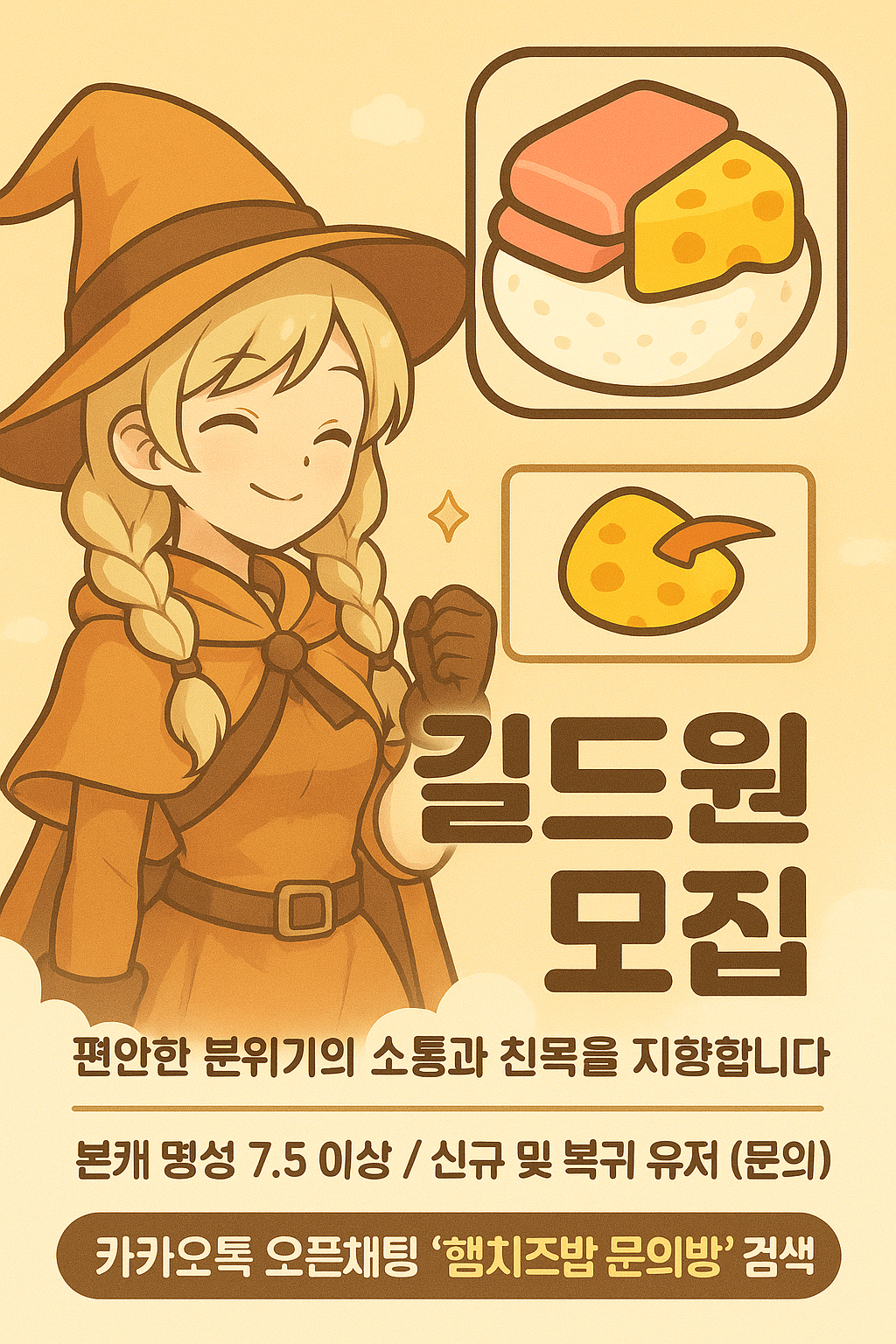 [공통] (신생길드) 길드 '햄치즈밥' 에서 길드원을 모집합니다. (4)