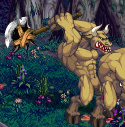 #1 몬스터와 치열한 전투가 벌어졌던 그날. 잠깐 한눈을 판 사이, 녀석이 휘두른 도끼가 코앞까지 다가왔고, 나는 눈을 질끈 감아 버렸다! |