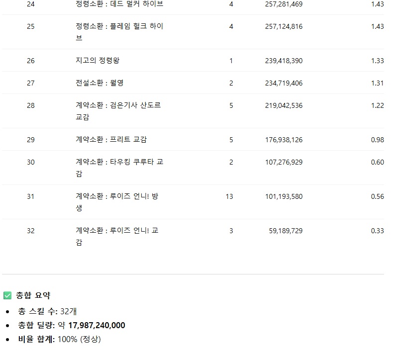 8. 가끔 이눔이 정보를 슈킹하고 개긴다. (천귀살등 딜량 총량이 누락됨)