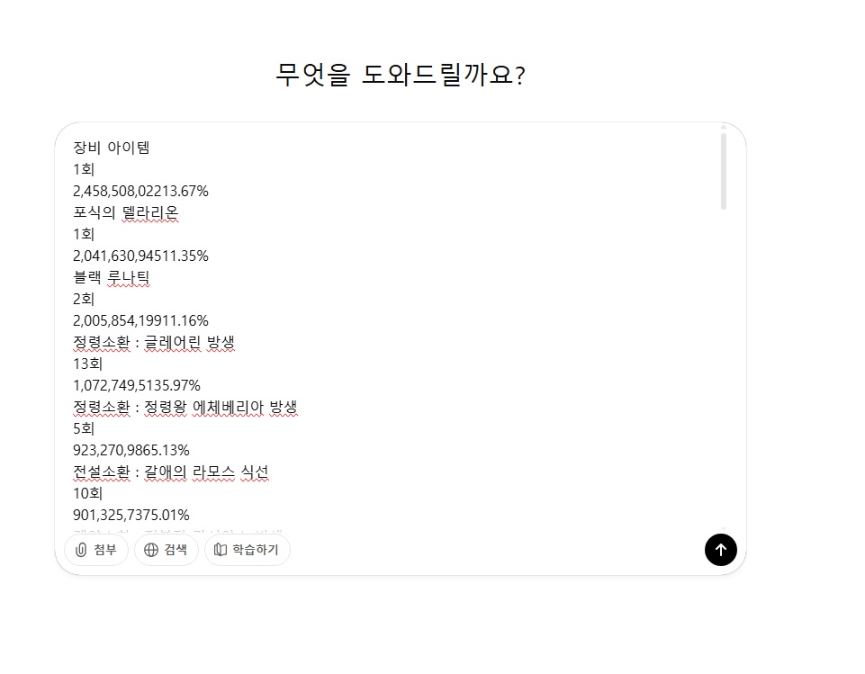 11. 그록은 잘만 알아 처먹더니만 닌 왜그러냐 (천귀살과 하이브 상향분이 전부빠져있음)