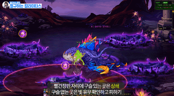 칼라미타스의 패턴은 빨간 장판과 보라색 오염지대가 동시에 나오는 패턴이 많습니다