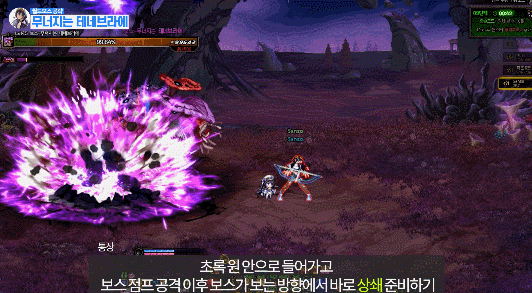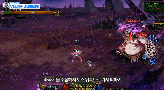 보스 뒤에 있으면 브레스에 맞지 않습니다, 하지만 바닥 빨간 원은 무적기 쓰셔야함