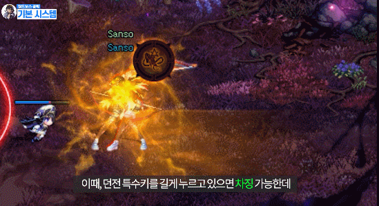이때, 던전 특수키를 길게 누르고 있으면 차징 가능한데