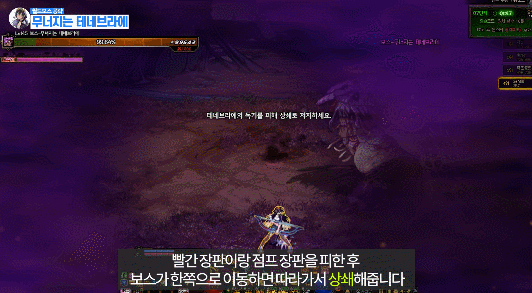 유저를 따라오는 보스가 오른쪽 보고 공격하도록 유도하고 나오면 딜