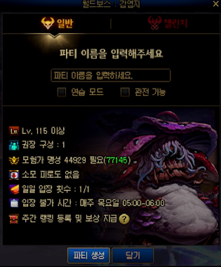 일반모드(1인,일일보상 있음)는 하루에 한 번, 챌린지(4인)는 주마다 한 번 점수 기록이 가능한데