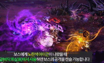 보스가 보는 방향(바닥에 화살표 참고)에서 사용해서 맞추면 보스의 공격을 캔슬 가능합니다
