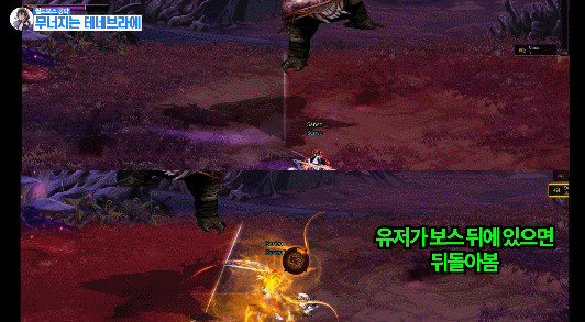 그렇기에 유저가 보스 뒤쪽에 있다면 뒤돌아서 시전하니까 주의하기