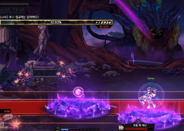 잠시후 독구슬이 보스한테 날아가서 패턴 스텍을 감소시켜줍니다